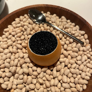 Mein Ei... na ja. Hübsch serviert, aber letztlich war es eine Eierschale, in der unten fast flüssiges Eigelb war, darauf Crème Fraîche, darin Croutons, Schnittlauch und obendrauf der allerdings sehr interessante Algenkaviar.