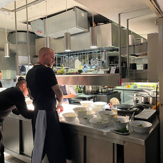 Im hintersten Hinterhof, recht versteckt gelegen hinter den Mülltonnen des Westin Grand, bietet es im ersten Stock ein Menü mit 5-7 Gängen an im Wechsel der Jahreszeiten, sowie einige Signature Dishes, von denen insbesondere das Onsen-Ei mit Algenkaviar und die Parmesanknödel in den veröffentlichten Besprechungen immer wieder Erwähnung finden.