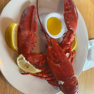 Um 11:30 hielt ich zum Mittagessen, das war etwas, was ich mir schon seit 20 oder 30 Jahren ausmale. In Maine am Wasser sitzen auf einem hölzernen Steg und Hummer essen. Das war besonders, weil die Betreiber dort lebende Hummer, Krabben und Muscheln in großen Becken hielten und man aussuchte, was man haben wollte. Frischer geht es nicht. Es war köstlich. Ich habe noch nie einen so frischen gekochten Maiskolben gegessen, war das gut! Statt eines Knackers gab es einen Holzhammer; ich hatte Spaß.