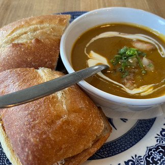 Ich hatte noch 1,5h und kehrte bei den drei Schwestern ein auf eine Combo: Hummer-Bisque und Rindfleisch-Sandwich. Die Suppe war klasse.