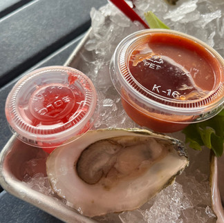 Da es heiß war, nur vier Austern und eine kleine Portion Muscheln. Super lecker, aber leider überall Schalensplitter drin.