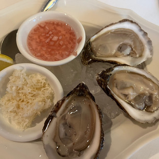 Ich bestellte drei Austern als Amuse-Bouche und dazu ein kleines Glas Pinot Grigio.