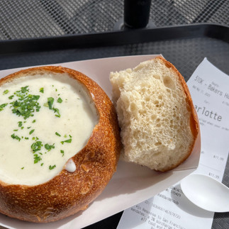 Natürlich lief ich zuerst durch den Presidio-Park (ich weiß nicht, ob ich auf die Idee käme, einen Kojoten zu füttern. Ich denke, mein erster Impuls wäre eher, ganz schnell auf einen Baum zu klettern), zu Fishermans Wharf, direkt zu Boudin und genoss dort die berühmte und wirklich superbe Clam Chowder im (uninteressanten aber hübschen) Sauerteigbrot (12$).