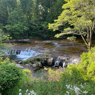 Die neue Unterkunft ist wieder ein Onsen Ryokan, aber zwei Klassen unter dem letzten; sieht man, ist aber trotzdem sehr nett. Wieder an einem Fluss, der noch wilder ist. Ich war auch im Onsen, einem komplett aus Holz, ca, 5x7m, über dem Fluss, Blick in die Sterne, dampfendes Wasser. Gottseidank habe ich die Etikette gelesen gestern, das wurde unauffällig aber genau und beifällig beobachtet, fast alles richtig gemacht. Leider waren keine Fotos möglich.