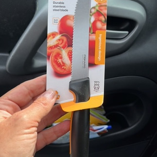 Dann stellte ich mir Schweden vor, na ja, und bog rechts statt links ab. Einmal noch in einen Riesensupermarkt, ich wollte so gern noch etwas von Fiskars haben, ein schönes Tomatenmesser ist es geworden und ein Mittagssnack.